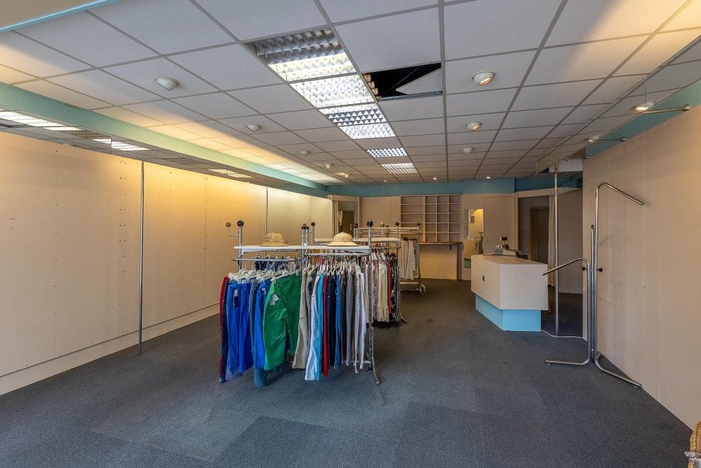 Winkelruimte met een BVO van ca. 47 m2, frontbreedte van ca. 4,6 meter met glazen pui, systeemplafonds met verlichting en doorgang naar 2e deel, thans in gebruik als garage/opslag, van ruim 61 m2. Een uitgelezen kans om de commerciële ruimte nog eens extra te vergroten. Deze garage is ca. 9,8 meter lang en ca. 6,25 meter breed en is geschikt voor meerdere auto’s en heeft een elektrisch bedienbare kanteldeur. Een mogelijkheid aan stalling die je niet zo vaak in de binnenstad aan treft.