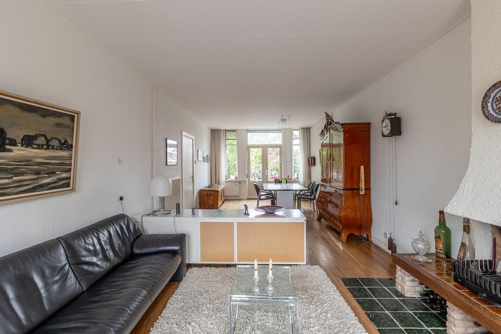 Er is een heel royale en lichte woonkamer van ruim 38 m2 (9,8 x 3,9 meter) met openslaande deuren naar een balkon aan de voorzijde. Hiervandaan en ook vanuit de woonkamer heb je een prima zicht naar buiten. In deze woonkamer met schouw (ter controle voordat deze eventueel weer gebruikt wordt) is royaal plaats voor het opstellen van uw zit-, eetmeubelen en kasten.