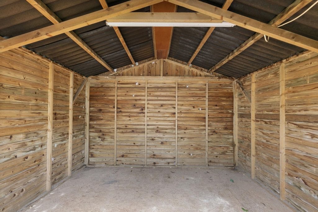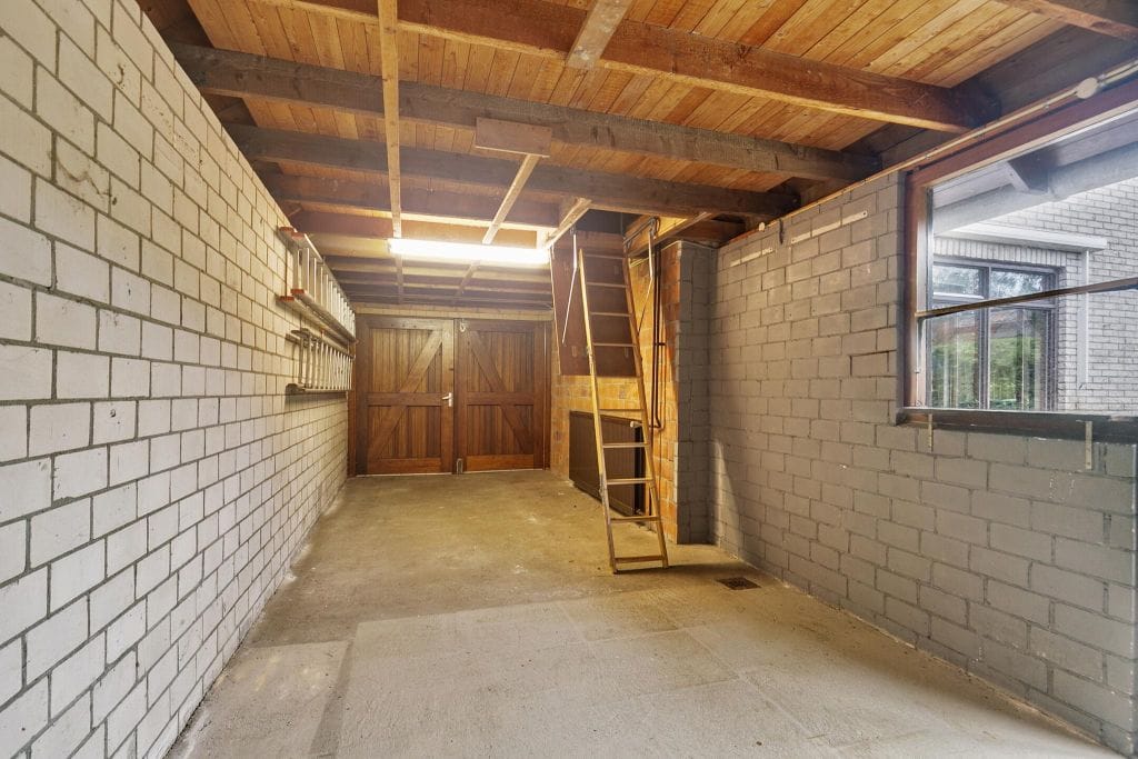 Rechts van de woning is een lange garage van ca. 8,8 meter lang met zoldervloer.