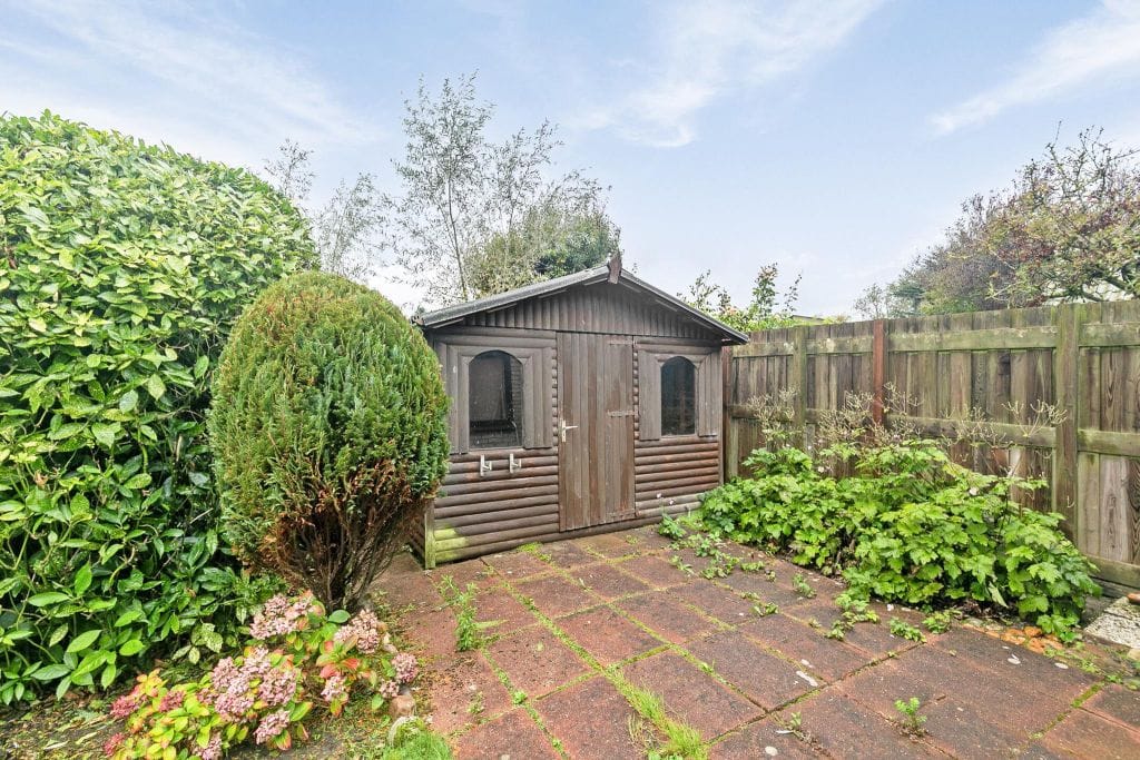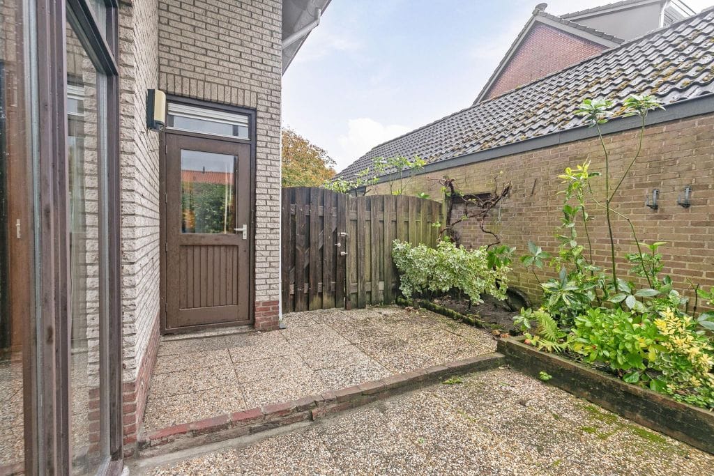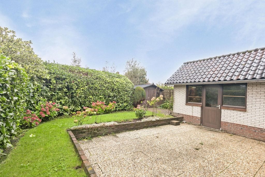De tuin is groter dan deze nu doet vermoeden. Brede, hoge struiken zorgen wel voor beschutting maar nemen ook een groot deel van de tuin in beslag.