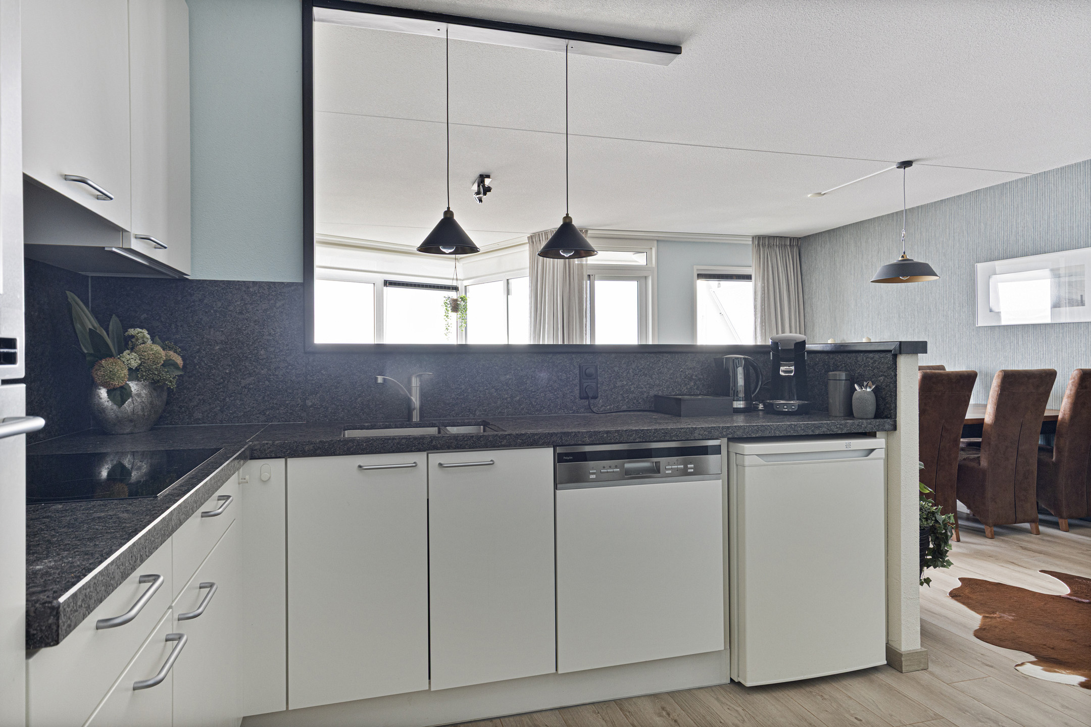De open keuken is een droom voor wie van kwaliteit houdt. Uitgevoerd in een praktische hoekopstelling en bekroond met een luxe granieten werkblad, is deze ruimte van alle gemakken voorzien. Of u nu kiest voor de snelheid van de inductiekookplaat of de uitgebreide mogelijkheden van de combi-oven, alles is binnen handbereik. Direct achter de keuken bevindt zich een praktische bijkeuken, waar de wasmachine en droger uit het zicht staan en waar ook de gloednieuwe Intergas CV-ketel (2024) is geplaatst.