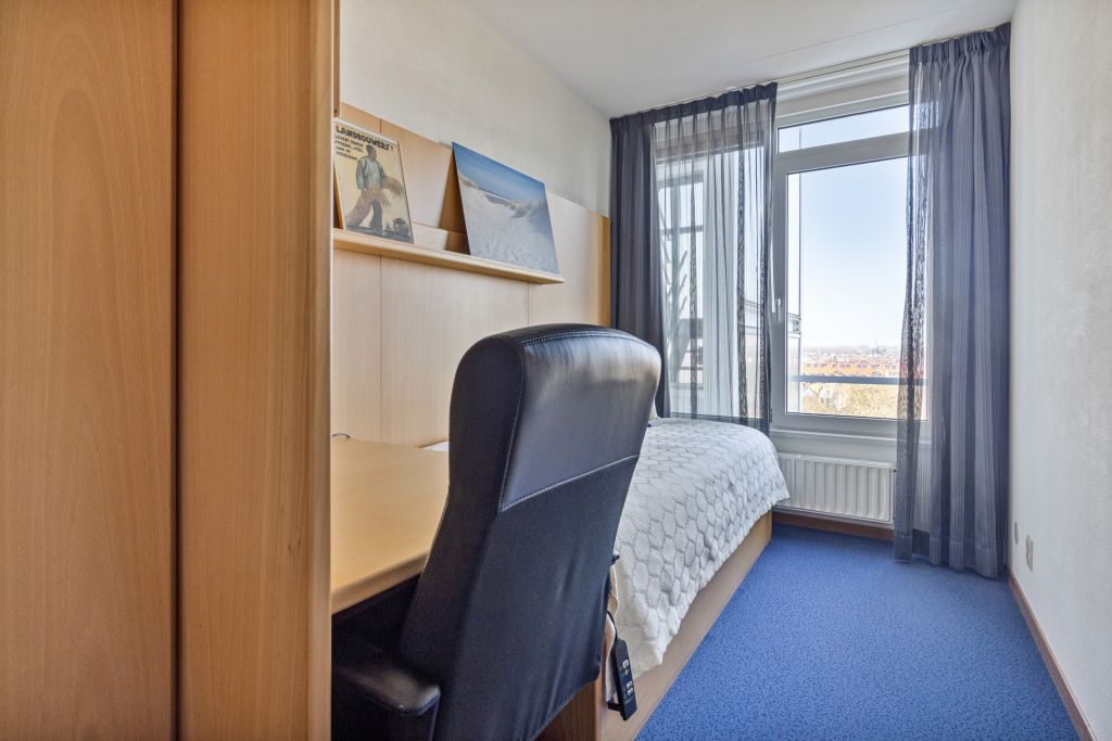 Aan de rustige achterzijde van het appartement liggen de twee slaapkamers. Beide kamers zijn slim ingericht en voorzien van vaste kastruimtes, waardoor de kamers optimaal benut worden. De badkamer is onlangs volledig vernieuwd en straalt een moderne, warme sfeer uit. Hier geniet u van een royale inloopdouche en een dubbel wastafelmeubel met grote spiegel en handige onderkastjes. Een handdoekradiator zorgt hier altijd voor een aangename temperatuur. Het toilet bevindt zich in een aparte, eveneens modern betegelde ruimte met een hangtoilet en fonteintje.