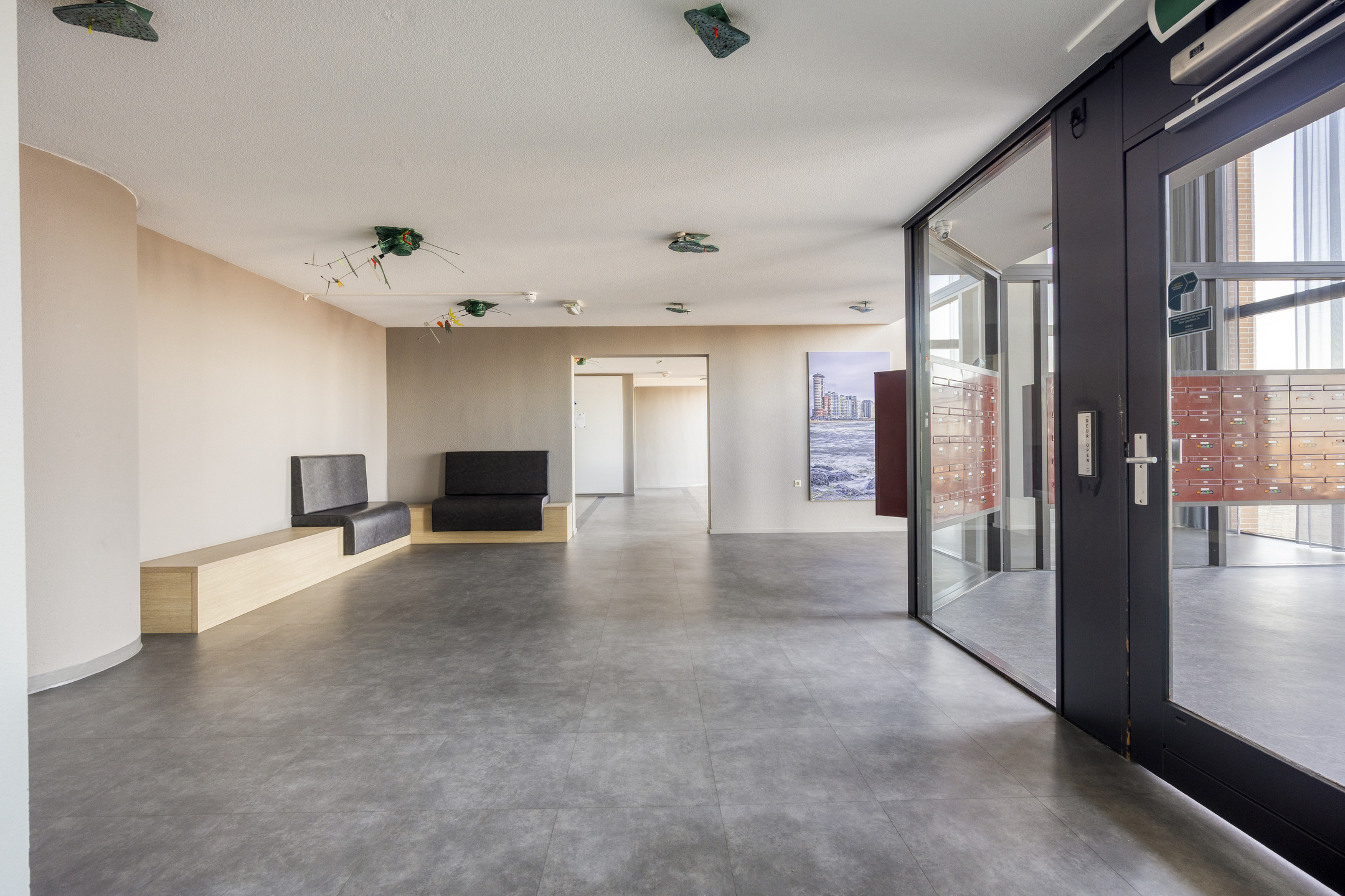 Bij binnenkomst in de entree vindt u de toegang tot de verschillende vertrekken, waaronder het toilet, de garderobe en de beide slaapkamers. De woonkamer is door zijn cirkelvormige ontwerp het absolute hart van de woning. Het biedt een fantastisch uitzicht op de omgeving, waarbij u de zon ziet opkomen in de richting van Antwerpen en ziet ondergaan richting Westkapelle.