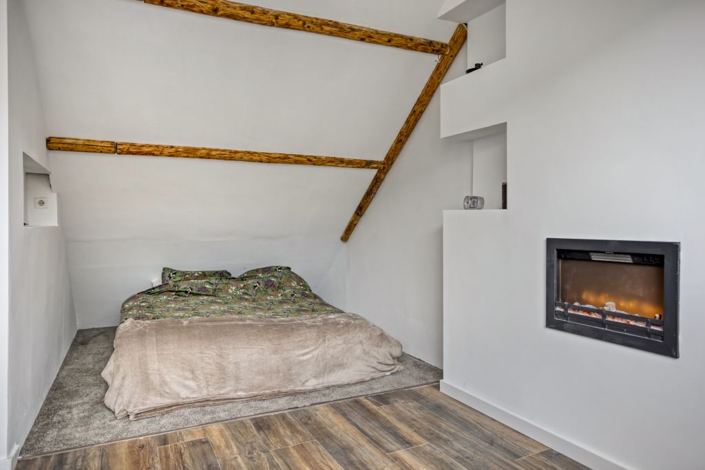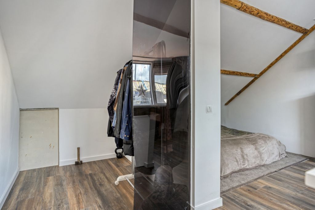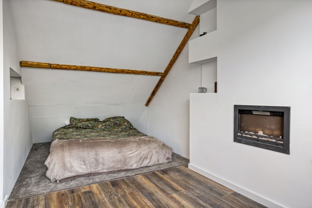 Op de tweede verdieping wacht nog een verrassing: een grote derde slaapkamer, voorzien van een dakkapel die de ruimte aangenaam vergroot en extra licht binnenbrengt. Een sfeervolle schouw met haard maakt het geheel compleet. Ook hier is volop bergruimte beschikbaar, netjes weggewerkt en gemakkelijk toegankelijk.