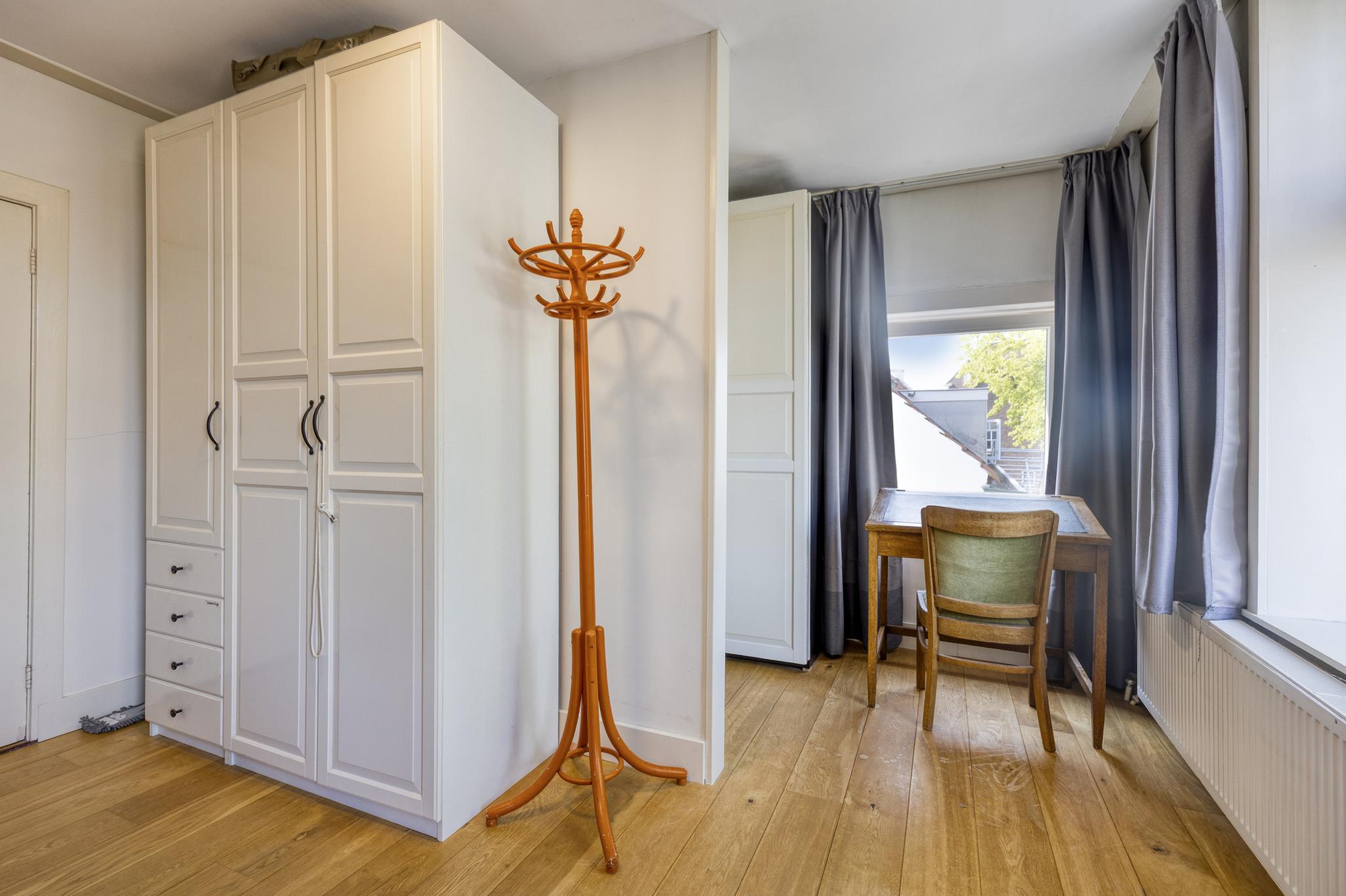 Op de eerste verdieping is een ruime overloop met authentieke paneeldeuren. Aan de voorzijde ligt de hoofdslaapkamer van ruim 23 vierkante meter met een walk-in closet en extra inbouwkasten. Aan de tuinzijde bevinden zich twee comfortabele slaapkamers. Ook deze verdieping beschikt over een tweede toilet en een tweede badkamer met douche en wastafel.