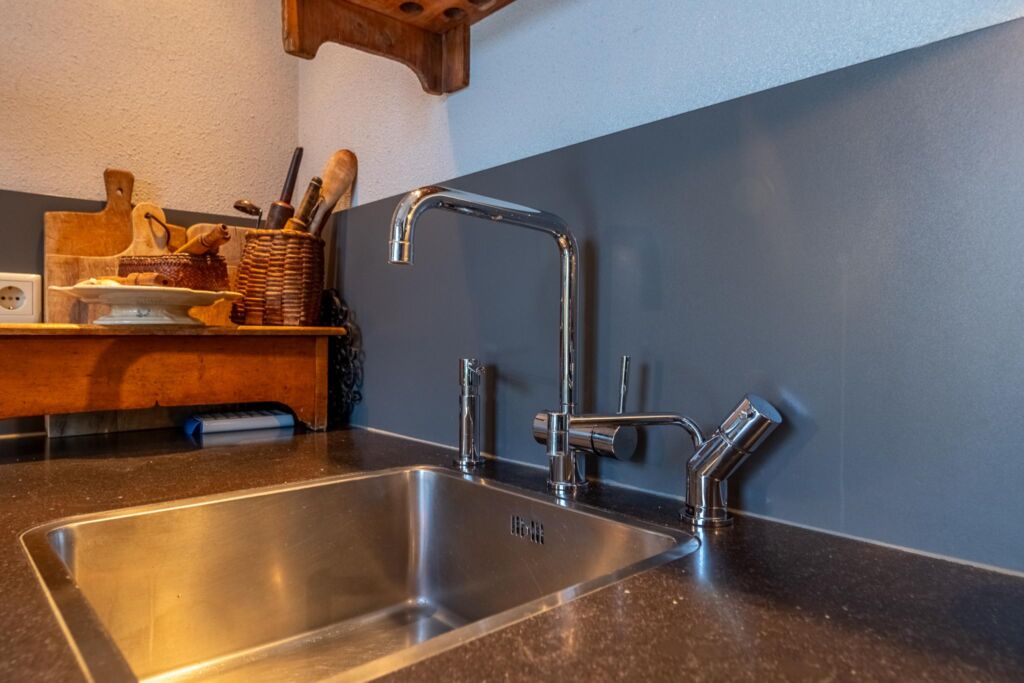 Er is een sfeervolle L-vormige woonkamer met een heel royaal zitgedeelte aan de voorzijde, een lange wand van 9,4 meter, die u veel mogelijkheden biedt om meubels naar eigen idee op te stellen en ook in deze ruimte zijn de warme kleurtinten en de houten vloer aanwezig. Er is een open keuken met een L-vormig keukenblok in een grijstint en een losstaand blok met apparatuur (geplaatst in 2011). Om de lekkerste gerechten te maken is er een 5-pits gaskookplaat, een RVS afzuigkap, een hoge koelkast, een oven en een combi-oven met magnetron. Warm water is er direct via een cooker en voor het wassen van de vaat is er een vaatwasmachine en een geïntegreerde spoelbak met mengkraan.