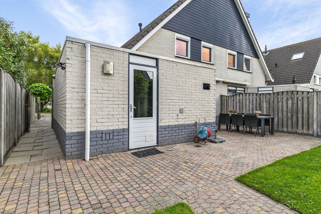 Er is een ruime voortuin met lange oprit waar u met gemak 3 auto's achter elkaar parkeert. verder is de tuin aangelegd met grofformaat siergrind, een haag die het perceel van de straat scheidt, schuttingen en enkele sierbomen. Aan de achterzijde is een makkelijk te onderhouden tuin met een gazon, terrassen van sierbestrating en enkele plantenborders langs de houten schuttingen.