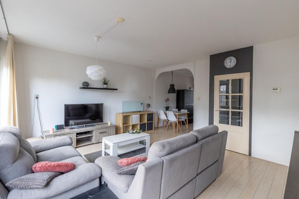 De woning heeft op de begane grond een gewijzigde indeling met de half open keuken gesitueerd in de ruimte, waardoor op de plek van de voormalige keuken nu de eethoek is gesitueerd. Tuingericht is er een ruime zitkamer met zicht op de achtertuin.