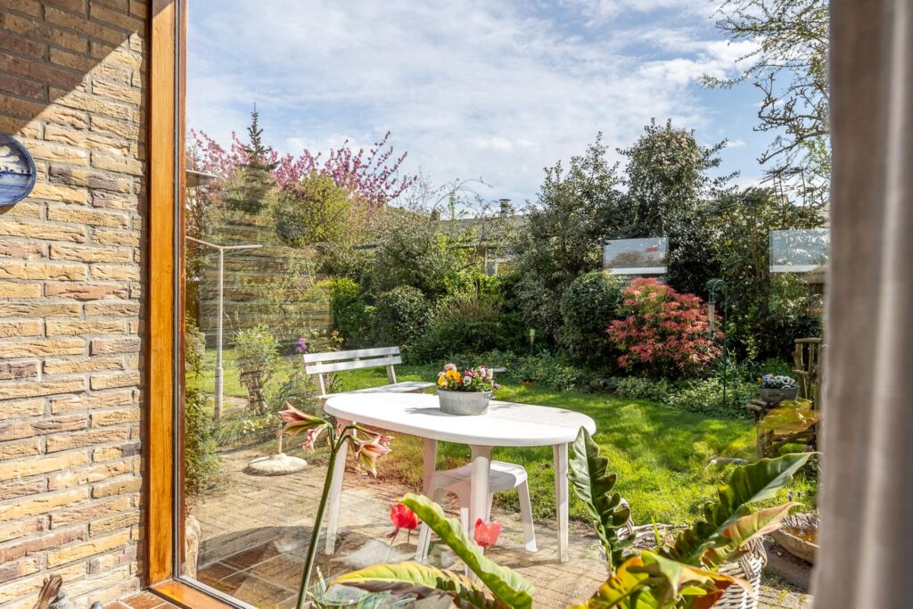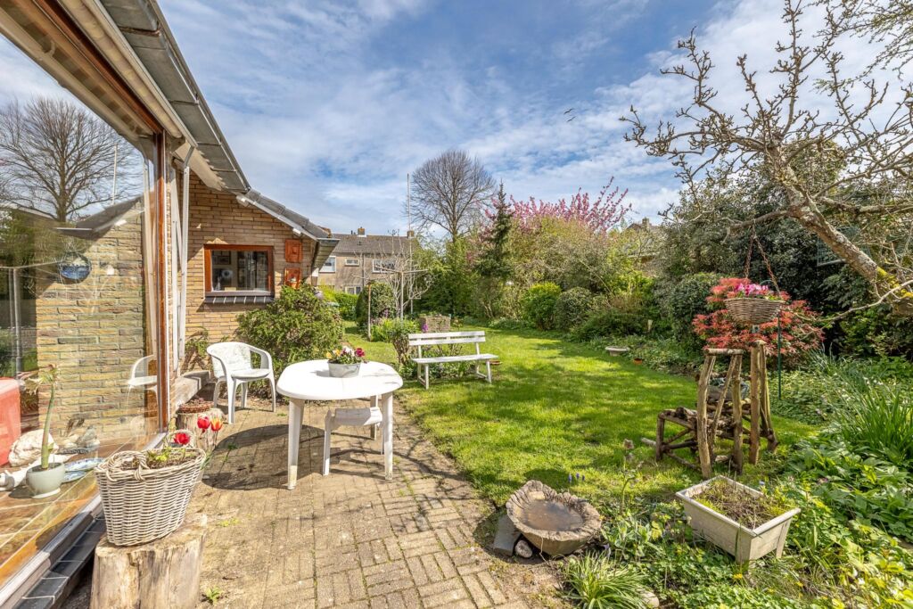Rondom de woning is een royale tuin, kleurrijk en met een mooie mix van kleurrijke planten, bomen, struiken en bloemen. In de tuin zijn diverse heerlijke plekjes om te genieten van de zon en het buitenleven. Kies een heerlijk plekje in de zon of in de schaduw. Doordat er direct rondom de woning geen hoge woningen staan is er een hoge mate van privacy.