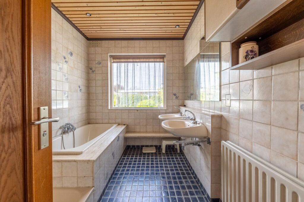 Terug in de hal zijn er aan de de linkerzijde van de woning twee slaapkamers van ca 15 m² en 9 m², de toiletruimte en een ruime badkamer van ca. 7 m². De badkamer is voorzien van een douchecabine, ligbad en twee wastafels.