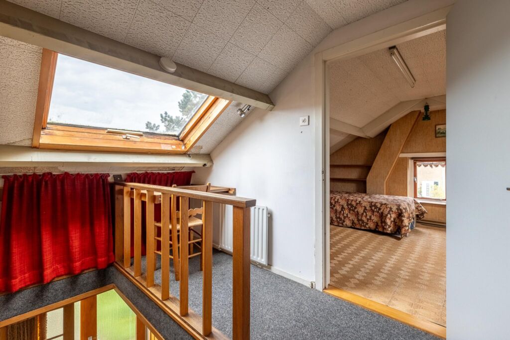 De verdieping: Op de verdieping is er een overloop met grote vaste kastenwand en een bergruimte waar de CV opstelling (huurketel) hangt. Aan de beide kopzijden van de woning zijn twee ruime slaapkamers.
