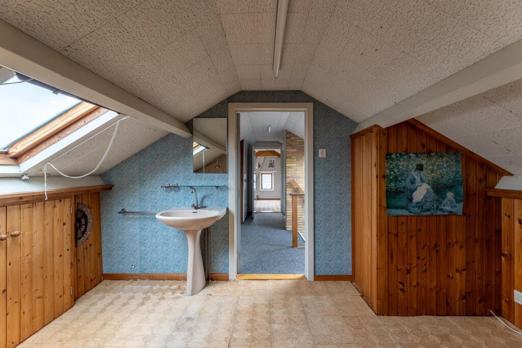De aangebouwde stenen garage is vanuit de woning bereikbaar en is voorzien van elektra, water en verwarming. Door het plaatsen van een zoldertje is hier extra bergruimte ontstaan.