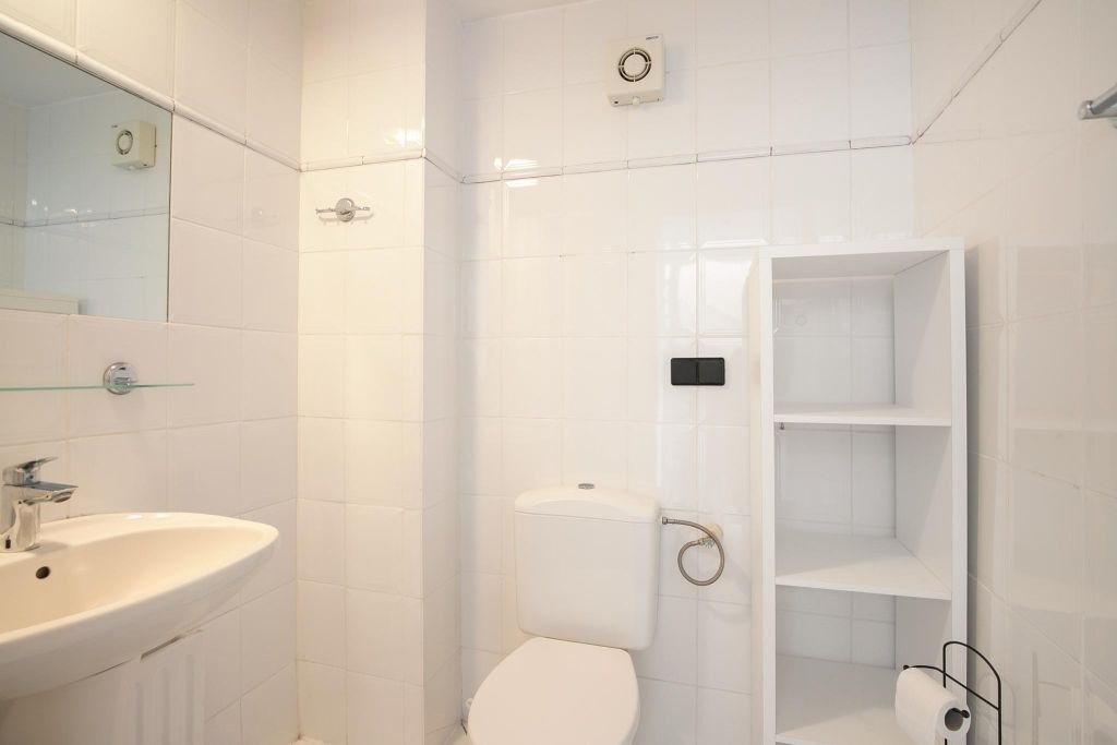 1e Verdieping: Deze verdieping biedt plaats aan een overloop, 2 nette, fris ogende slaapkamers aan de koele zijde, met lichte wanden en een laminaatvloer. Verder is er een volledig betegelde badkamer met douche, toilet en wastafel.