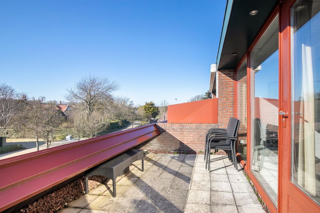 Het heel royale dakterras is een heerlijke plek om te genieten. De ligging is op het westen en biedt de zon vanaf ca. het middaguur de gelegenheid om het terras te beschijnen. De ondergaande zon, kun je vanaf het terras achter de duinen zien wegzakken.