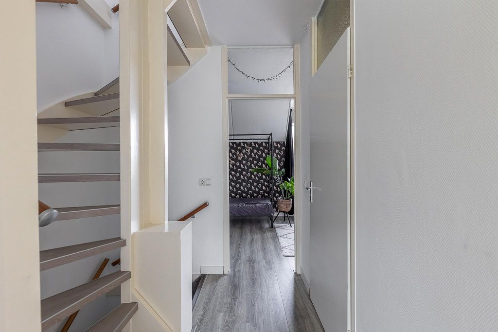 Overloop met toegang tot de vierde en vijfde slaapkamer. Door de grote dakkapel op deze verdieping is de mogelijkheid ontstaan voor maar liefst 2 slaapkamers. De kleinere ruimte heeft een 2,41m bij 2,22m en is een fijne ruimte voor een thuiswerkplek, een hobby ruimte of een kinderkamer. De tweede slaapkamer heeft een oppervlak van ca. 10m² en is hiermee een fijne ruime slaapkamer. Vanuit de slaapkamer is een berging te bereiken, deze is voorzien van een dakraam. Op de overloop is een wasruimte gerealiseerd met betegelde wanden en vloer, hier bevindt zich tevens de cv installatie. Op die manier is alles netjes aan het oog onttrokken en zorgt dit voor een opgeruimde overloop.