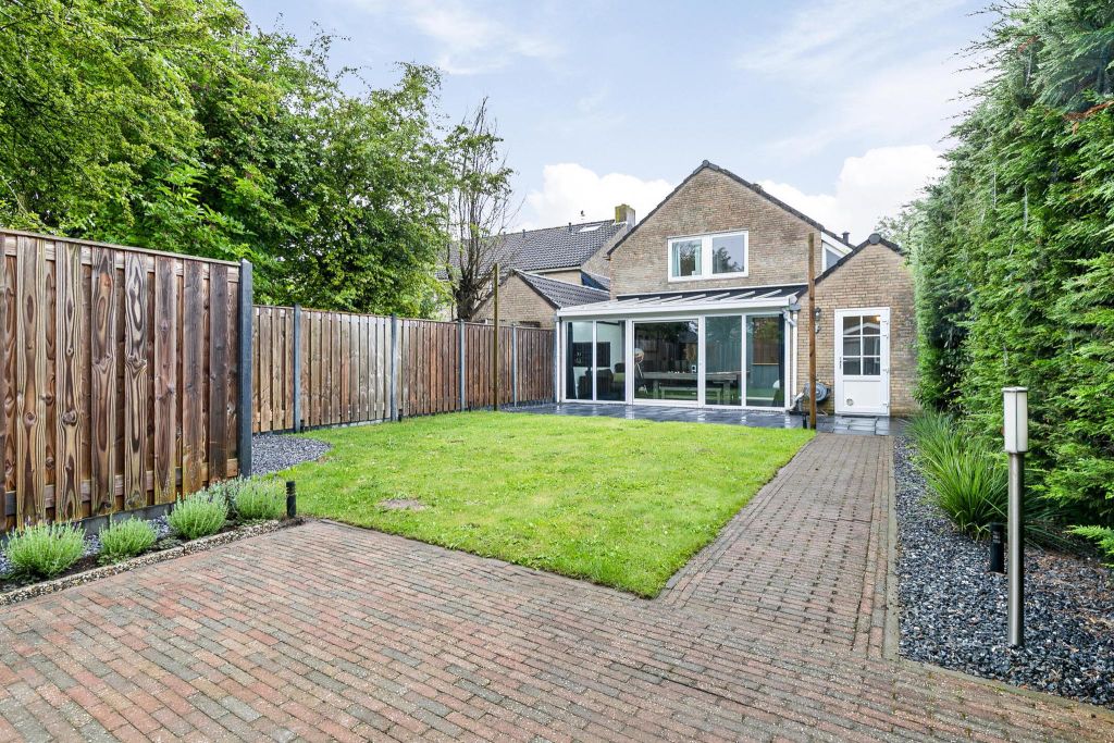 De achtertuin is bereikbaar via de extra kamer of via de schuifpui in de serre.