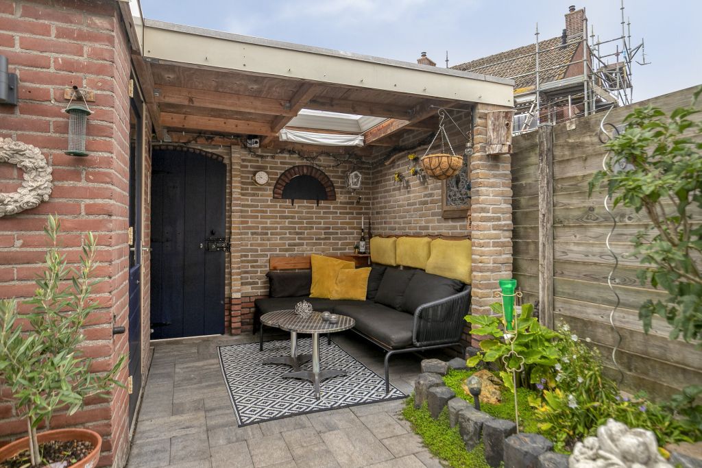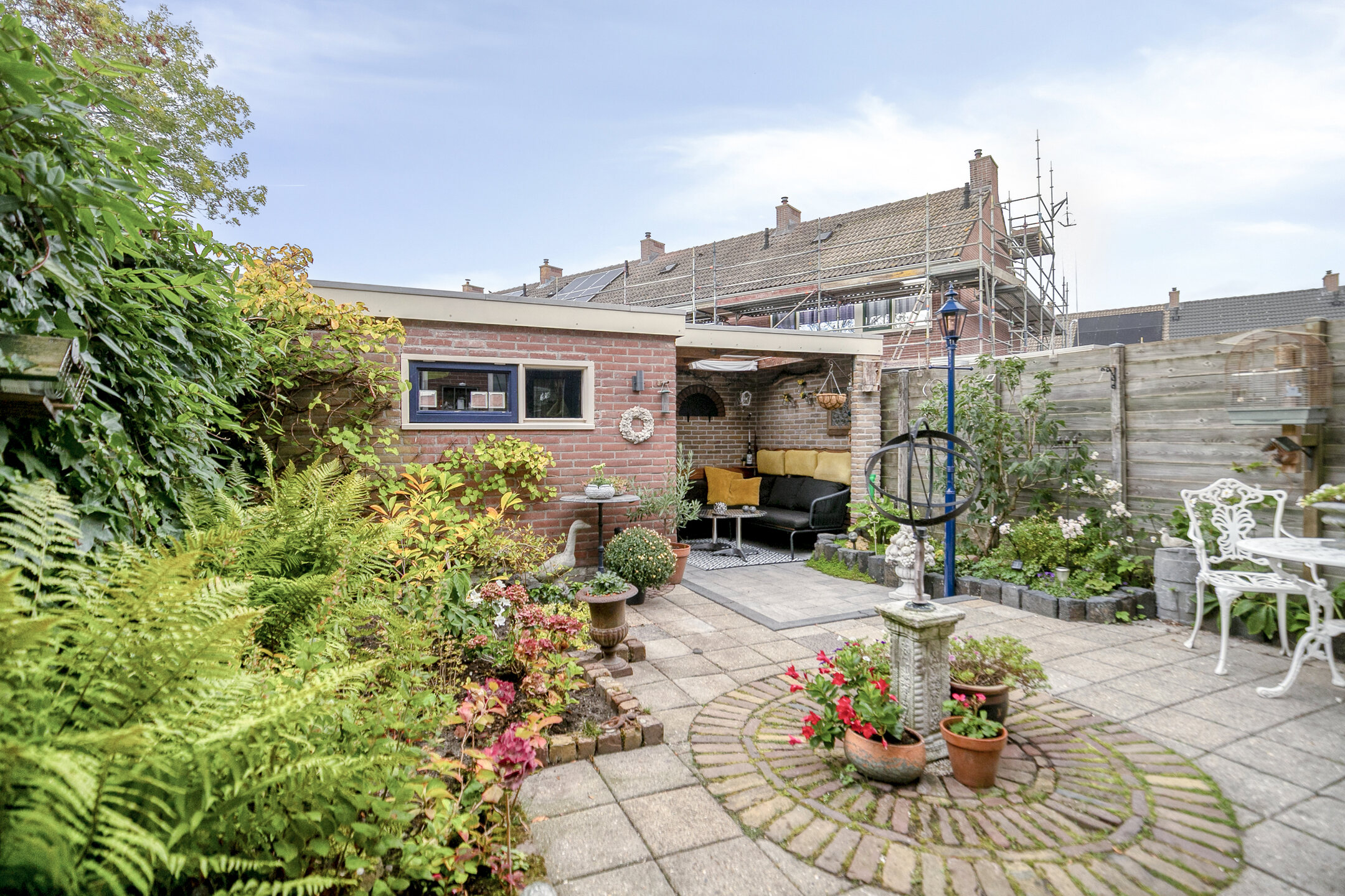 De tuin is netjes aangelegd, zowel aan de voor- als achterzijde. Aan de voorkant is extra zonwering aangebracht bij het raam van de woonkamer. De achtertuin is omsloten en sfeervol ingericht met een groot terras en plantenborders eromheen. Achterin de tuin staat een stenen berging die is vergroot en voorzien van elektra. Onder de overkapping, die grenst aan deze berging, is het heerlijk zitten zodra de eerste zonnestralen zich laten zien. Een fijne plek om buiten te zijn, ook als het nog vroeg in het jaar is.