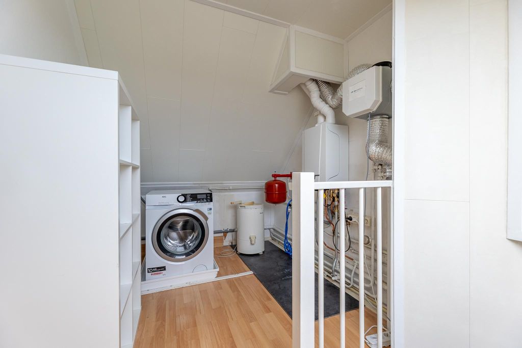 Hier is een overloop met opstelling voor de nieuwe cv-ketel en wasmachine-aansluiting. Een 4e grote slaapkamer met dakkapel en bergruimte achter de knieschotten zijn heel welkome ruimtes op deze verdieping.