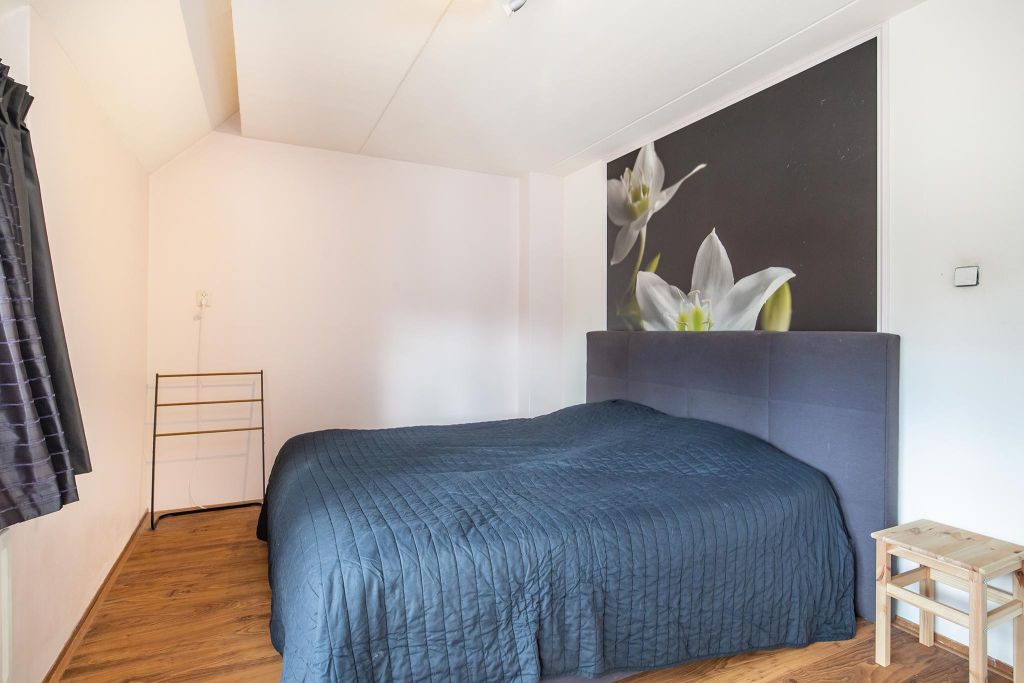 De overloop brengt u naar een grote slaapkamer aan de voorzijde, die de gehele breedte van de woning bestrijkt. Hier is ruim plaats voor een groot bed en grote kledingkast. Aan de achterzijde zijn 2 ruime slaapkamers. De badkamer bevindt zich in het midden. De badkamer is voorzien van een ligbad, douche in bad, 2e toilet en wastafel in een badmeubeltje. De kozijnen op deze verdieping zijn van hout en voorzien van enkele beglazing.